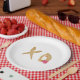 Pratos de papel XO de beijo e abraço