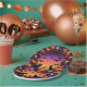 Adicione um toque de charme assustador às suas celebrações de Halloween com estas placas de papel lindamente desenhadas. Apresentando um fundo de gradiente vibrante que transita de roxo escuro para laranja brilhante, essas placas são adoradas com elementos clássicos do Dia das Bruxas. A intrincada fronteira das folhas do outono, abóboras e teias de aranha estabelece o palco de uma atmosfera festiva. Dentro na fronteira, você encontrará morcegos brincalhões, aranhas, um gato preto, e abóboras entalhadas, tudo contra o fundo do céu noturno. Perfeito para as festas de Halloween, estas pratos certamente agradam aos seus convidados e adicionam um talento festivo à sua mesa.