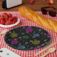Misturar a escuridão do preto com o pop de cor dos flocos de neve faz um belo olhar de inverno moderno. Há também copos correspondentes. Também disponível em outros dois designs.