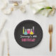 Placa de sobremesa de festas de ciências para meninas, perfeita para o próximo experimento de aniversário de seus cientistas. Cinzas escuras com tênis coloridos em verde, rosa, amarelo, roxo e lacrimejo.