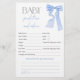Este design apresenta um delicado arco azul, criando um eterno e um visual sofisticado perfeito para celebrar um menino. Com tons suaves e detalhes graciosos, ele define o palco de um chá de fraldas elegante e memorável.