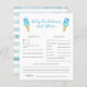 Tema do sorvete divertido Previsões do bebê chá de fraldas do garoto e cartão de aconselhamento apresentando uma ilustração do sorvete verde azul e de menta em um cone de waffle. Os textos são editáveis. Um jogo perfeito para jogar durante o chá e definitivamente será um excelente! O cartão aos hóspedes para predizer como o bebê se pareceria.