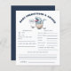 Previsões de bebê chá de fraldas de dinossauro azul e bonito e cartão de aconselhamento. Os textos são editáveis. Um jogo perfeito para jogar durante o chá e definitivamente será um excelente! O cartão aos hóspedes para predizer como o bebê se pareceria. Projetado para o chá de fraldas de um menino.