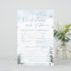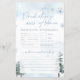 Previsão de bebês e jogo de aconselhamento no tema do inverno com pinheiros e flocos de neve.