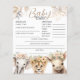 Adicione risos e brincadeiras ao Chá de fraldas com nossa 'Predicções de Bebê e Chá de fraldas Safari de Advogada'. Uma maneira divertida de adivinhar as preferências dos hóspedes! Pegue a sua agora e crie memórias inesquecíveis!