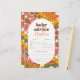 Um cartão retrô de conselhos e previsões de bebês que corresponde ao nosso "Olá, Querida | Groovy Retro Flowers Boho Chá de fraldas". Exibir a coleção vinculada nesta página para itens correspondentes. Este design apresenta um plano de fundo floral de ranhura com uma cobertura oval branca no centro. A paleta colorida de vinheta quente de matizes castanhos, amarelos, laranja, creme e verdes dá um toque real de 70 anos. O padrão de margarida florida é um padrão de potência em forma de desenho animado, feito à mão, com cores ousadas e contornos fortes para corresponder ao estilo hippie dos anos setenta. Dentro no quadro oval, há espaço para os convidados escreverem suas previsões de natalidade, previsões de semelhança, e conselhos para os novos pais.