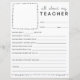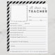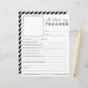 Um presente divertido de apreciação de professores no final do ano escolar para dar obrigados de professores. Isto é tudo sobre o meu professor preencher a carta de vazio com espaço para o seu filho escrever à mão e uma caixa de seta de vazio para escrever ou desenhar alguma coisa. A parte de trás deste presente de carta de professor é um branco listrado e preto. Isso faria uma professora bonitinha manter-se. Por favor, dê uma olhada na minha coleção de presentes de professores para mais ideias.