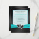 Este cartão de RSVP de casamento monogramado tem uma aparência formal com as pregas de cetim falso preto e fita de cetim azul turquesa impressa com um par de jóias diamantadas impressas corações unidos nela. Se houver outros itens que você precise neste estilo, envie um e-mail para niteowlstudio@gmail.com com sua solicitação.