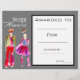 Um certificado de premiação de arte de classe moderno e elegante com imagem de ilustração de moda em aquarela perfeita para incentivar um jovem estudante de arte e design têxtil. Você pode escrever seus próprios detalhes. Um ótimo recurso para qualquer tipo de professor de sala de aula.
