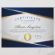 O certificado profissional de gradiente azul e dourado inclui o prêmio de conquista de ouro e medalha azul.