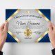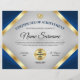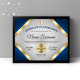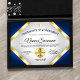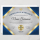 Prêmio alguém com este Prêmio de Certificado de Conquista 8,5x11 Professional e Elegante, com tons azuis e ouro, e um plano de fundo gradiente de cinza. Inclui dois prêmios de medalha de ouro.