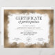 Prêmio de Certificado de Participação Elegante, com borda de efeito de brilho dourado, espaço para seu logotipo e texto totalmente personalizável. Perfeito para o certificado de participação para qualquer tipo de evento, curso, oficina, concurso e muito mais. Você pode usar este design de diploma para prêmio de funcionário ou diploma de estudante, simplesmente edite o texto de acordo com suas necessidades. Este certificado de modelo de presença é super versátil para se adequar a qualquer organização ou negócio.