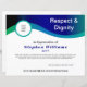 Prêmio de Dignidade e Respeito por funcionários corporativos ou empresariais. Design composto por 1BizChoice (direitos reservados).