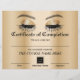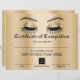 Certificado de Eyelash Dourado moderno de Prêmios de conclusão.