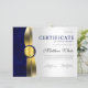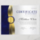 Folheto de Prêmio de Certificado Profissional Azul e Dourado Elegante Com Medalha Azul E Dourada.