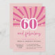 Traga uma vibração retroativa rosa para a 60ª festa de aniversário com estes cartões-postais vibrantes. Fácil de personalizar com todos os 60 detalhes de comemoração e apresentando uma fofinha tipografia vintage. Texto: "60 e fabuloso! Junte-se às comemorações do (nome) aniversário".