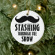 bigode e design de texto de "Prendendo a neve" em ambos os lados.
