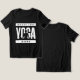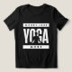 Este desenho engraçado de yoga apresenta uma silhueta de uma pessoa realizando a Pose Fácil, também chamada Sukhasana, e a citação, "Preocupe Menos, Iogue Mais."