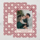 It features a timeless diamond pattern in the background and 2 charming coquette bows on each top corners that beautifully frame your family photo, the perfect blend of classic and festive.