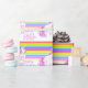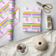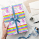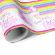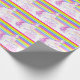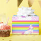 A listra do arco-íris da aguarela do unicórnio modelou o papel de envolvimento de quatro aniversários. Personalize com seu próprio nome, leia atualmente o feliz aniversario Taylor quatro. Pintura chantering lunática bonito e design do unicórnio por Sarah Trett www.sarahtrett.com para www.mylittleeden.com no zazzle.