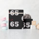 65ª festa de aniversário com negrito e branco feliz e texto 65 em preto com buquê de balão de festa. A cor de fundo preta pode ser alterada.