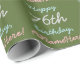 Este design de papel de embrulho de aniversário personalizado apresenta uma mensagem como "Feliz 76 anos de aniversário, ANameHere!", onde o nome e o número de aniversário podem ser personalizados. O fundo é verde-oliva escuro colorido. Um papel de embrulho como este poderia talvez ser usado para embrulhar presentes que estão sendo dados para celebrar o aniversário de alguém. [~Z0000243]