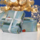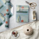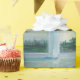 Papel de embrulho bonito e original, Dia de os namorados, com pintura de coração e árvore sobre fundo azul. Excelente para todas as ocasiões - amor, aniversário, noivados e outros.