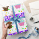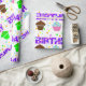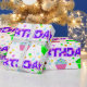 Papel de embrulho de aniversário bonito, colorido e divertido, com um padrão de cupcakes, bolinhas e a palavra aniversário escrita em uma fonte de bolinhas. Este papel de embrulho de aniversário divertido, se perfeito para o dia especial de alguém.