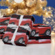 Os mustang velhos, vermelhos são caracterizados neste papel do presente de aniversário.