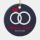 Ideia do presente do Natal para o noivado, wedding. Ornamento vermelho e azul do Xmas com alianças de casamento. Ideia do presente para apenas contratado ou casal.