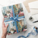 Este papel de embrulho de Natal mostra um gato Maine Coon relaxando em uma varanda, ao lado de uma árvore de Natal. Foi desenhado com amantes de gatos em mente. "trabalho de arte gerado por IA com direção design por Susang6"