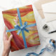 Papel de embalagem elegante e original com ondas vermelhas e amarelas.