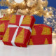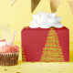 Presente Árvore de Natal Dourada no Papel Vermelho