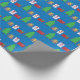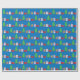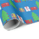 Um papel de embrulho projetado com árvores de Natal e presentes em fundo azul. Feliz Natal!