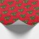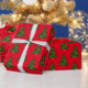 Papel de embrulho de presente de Natal mostrado numa cor vermelha de fundo com uma impressão de árvore de Natal festiva. Personalize este papel ou comprar como está.
