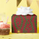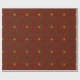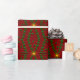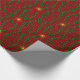 Estrelas verdes da árvore e do ouro de Natal em um papel de envolvimento vermelho do fundo.