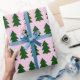 Árvores de Natal verdes colam papel de enrolamento rosa.