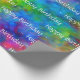 Um belo papel brilhante a embrulhar o papel a rebentar com um arco-íris de cores num design que faz fronteira entre arte fractal e corante de gravata. "Parabéns" pode ser alterado para se adequar a qualquer evento ou totalmente excluído (apenas deixe o vazio do campo de texto). ** NOTA: A visualização "Plano" mostra uma seção de papel de 3 pés de comprimento. O comprimento mínimo do rolo é de 6 pés, de modo que a vista "Seam" mostra onde a primeira seção de 3 pés encontra a segunda seção de 3 pés. Um rolo de 30 pés, por exemplo, teria dez seções de 3 pés se repetindo.