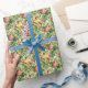 Papel colorido de embalagem de aves tropicais e design de flores para aniversários ou qualquer ocasião.
