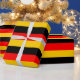 Bandeira alemã Deutsche Flagge Striped Wrapping Paper: Papel especial de embalagem que inclui as listras pretas, vermelhas e amarelas da bandeira alemã. Acrescenta um toque especial aos presentes para alemães orgulhosos ou doações em eventos transculturais ou temáticos da Alemanha!