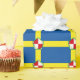 Papel de embrulho com design com uma bandeira do condado histórico de Pembrokeshire, no País de Gales, na Grã-Bretanha Excelente; bandeira azul-azure com uma cruz amarela e rosa branco Tudor no centro