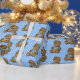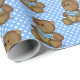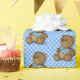 Urso castanho-bonito com bib azul nas bolinhas para presente de bebê