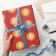 Presente Bitcoin no papel de envolvimento vermelho