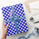 Um papel de embrulho construído com um padrão de bolinhas branco sobre um fundo azul real. Personalize o fundo azul real de uma maneira fácil.