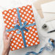 Presente Bolinhas branca no papel de embalagem laranja bril