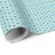 Este papel de embrulho azul claro está coberto por um padrão de bolinhas de cobre, perfeito para seus presentes em qualquer ocasião.