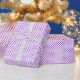 Presente Branco com papel de envolvimento roxo das bolinhas