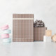 Um papel de envolvimento projetou com um teste padrão marrom e branco do guingão no tamanho pequeno.