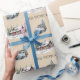 Cabine de registro russo no papel de enrolamento das montanhas. Personalize com seu próprio nome de família ou mude-o para "Feliz Natal"! Tão fofo embrulhar seus presentes personalizados para os feriados. Inclua uma das etiquetas de presentes do "Winter Time at the Cabin Holiday Collection" e embrulhe tudo com um arco bonito!