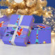 Esta casa retro para o papel de envolvimento dos feriados olha como uma cena fora de um special do Natal da televisão dos anos 60. As características de design minimalistas um casal atrativo dos desenhos animados na sala de visitas de uma casa moderna do meio século. A sala caracteriza proeminente uma parede de pedra roxa e azul e uma harmonização do tapete listrado roxo e azul. Contra a parede, há uma lareira cónica de turquesa com um fogo rujir. Dois, o vermelho e as meias do White Christmas foram pendurados pela chaminé da modificação com cuidado. As costas de luzes de Natal coloridas são amarradas através da parte superior da parede. No canto, o homem cortês da casa lounging em uma cadeira vermelha do ovo. Está vestindo um terno azul com um laço vermelho. Há um sprig do azevinho fixado a sua lapela. Em uma mão, está mantendo um martini de vidro. Nenhuma maravilha está tão completo do espírito do Natal! Ao lado dele, há uma árvore de Natal pequena, verde com ornamento da cerceta e uma estrela amarela. Pendurando do teto, há um dispositivo elétrico claro amarelo de Sputnik. Um louro com uma figura da ampulheta está sentando-se no tapete. Está vestindo um vestido e um chapéu festivos, vermelhos do papai noel. Ao lado dela, no assoalho, há um jogador gravado portátil azul e preto. Diversos álbuns do Natal são dispersados perto do disco-jóquei bonito. Vá adiante e cante avante. Você sabe que você quer a!